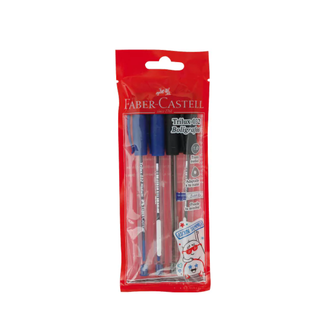 Bolígrafo Faber Castell Trilux 032 Blister 2 Azules y 2 Negros